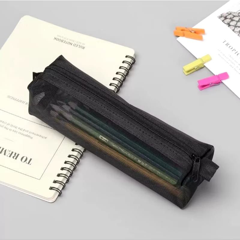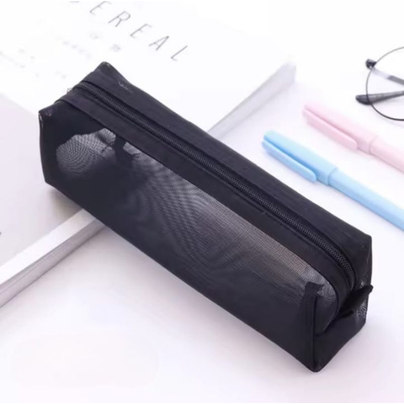 Tas Pena Portabel Kotak Pensil Jaring Transparan Sederhana Tas alat tulis Siswa kantor / kerja Tebal Kantong Penyimpanan