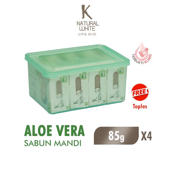 K Natural White Sabun Mandi Batang Aloe Vera 85GR x 4 pcs + Toples