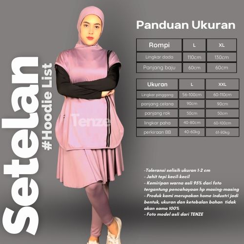 TERLAKU Tenze Setelan Olahraga Wanita Leging Rok Payung Jilbab Rompi Hoodie LIST Sport Sport Badminton Senam