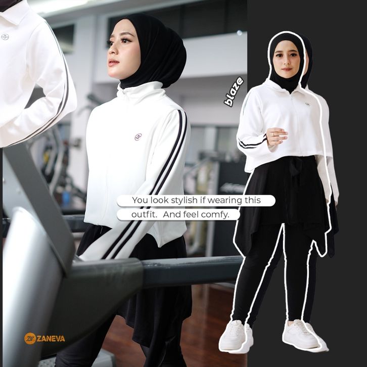 GROSIR [BEST SELLER] ZANEVA SPORTWEAR - Blaze Outer Crop Sporty /Setelan Olahraga Muslimah Hijab Rok Celana ahicg