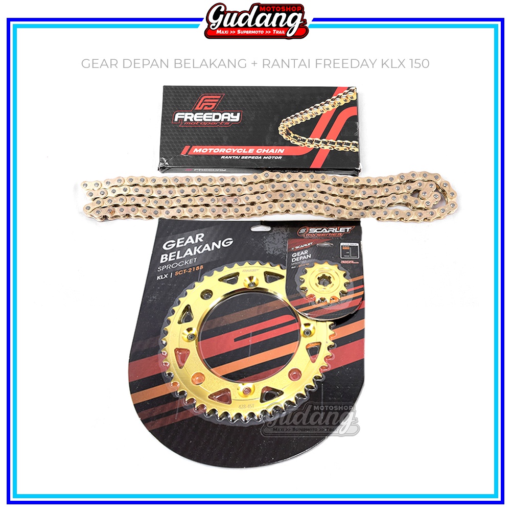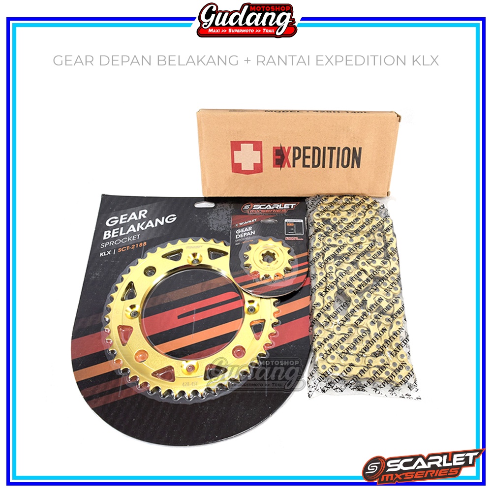 Paket Hemat Gear Gir Depan 13t 14t 15t 16t Belakang 43t - 56t Scarlet Mx Plus Rantai 428-140 Expedition Gold Klx 150