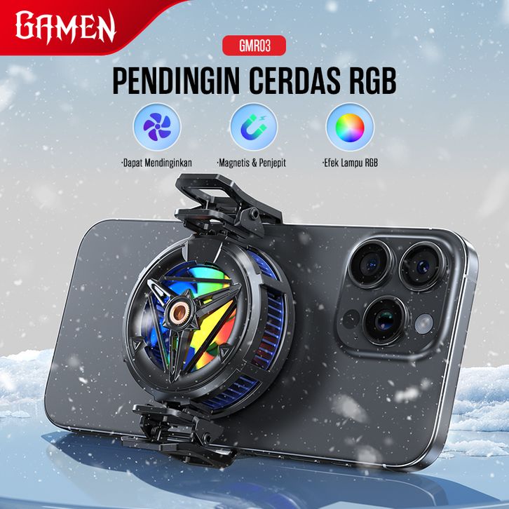 GAMEN Pendingin HP Gaming RGB GMR03 – Magnetic Fast Cooling hingga 0°C, Ringan + Free Heatsink & Clip