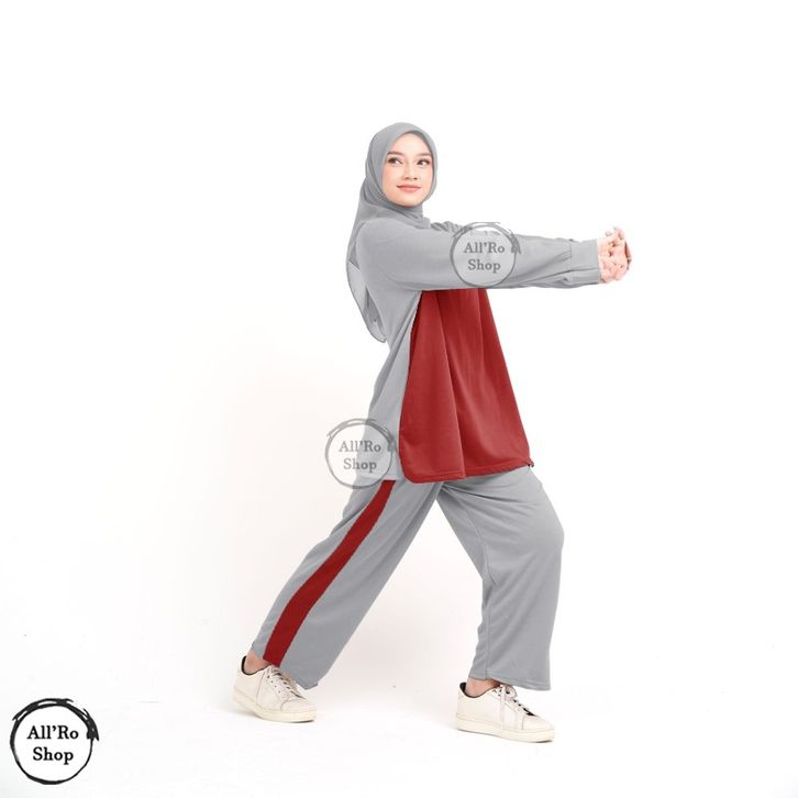 Set Hana Setelan Olahraga Wanita Pakaian Senam Lengan dan Celana Panjang Setcel Muslim Hijab Friendly Syari Sopan Jumbo