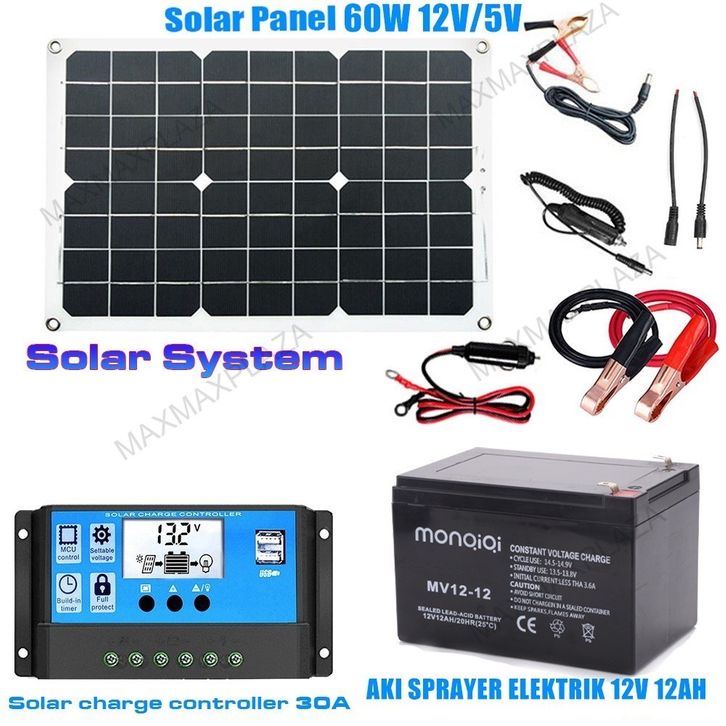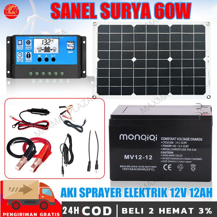 Promo Aki sprayer elektrik+Tenaga Surya Panel Tenaga Surya Polikristalin Sanel Surya 60w/aki Ups