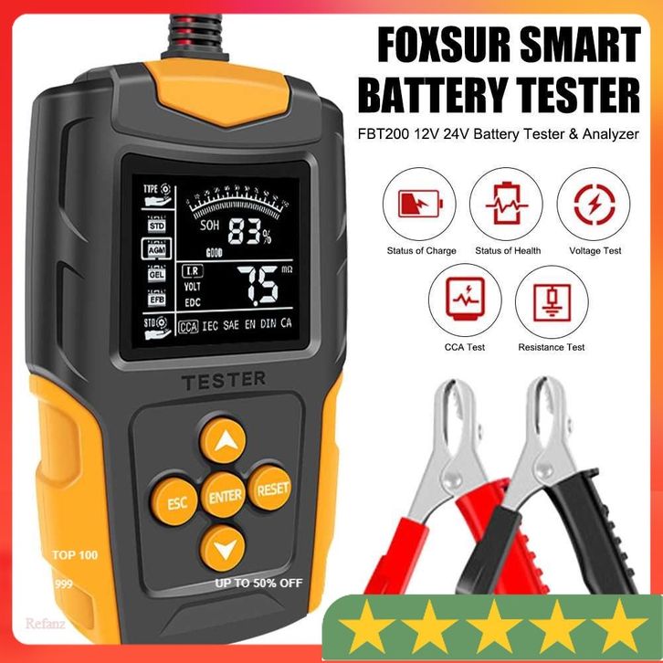 Promo FOXSUR Tester Aki Mobil Motor Kendaraan Portable Battery Charger 200Ah with LCD - T-200 New