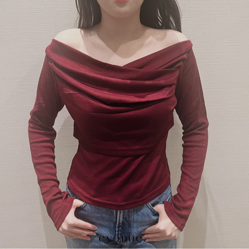 EVONNE Sohee Top - Atasan Wanita Long Sleeve - Baju Lengan Panjang Wanita Knit Top Blouse E-319