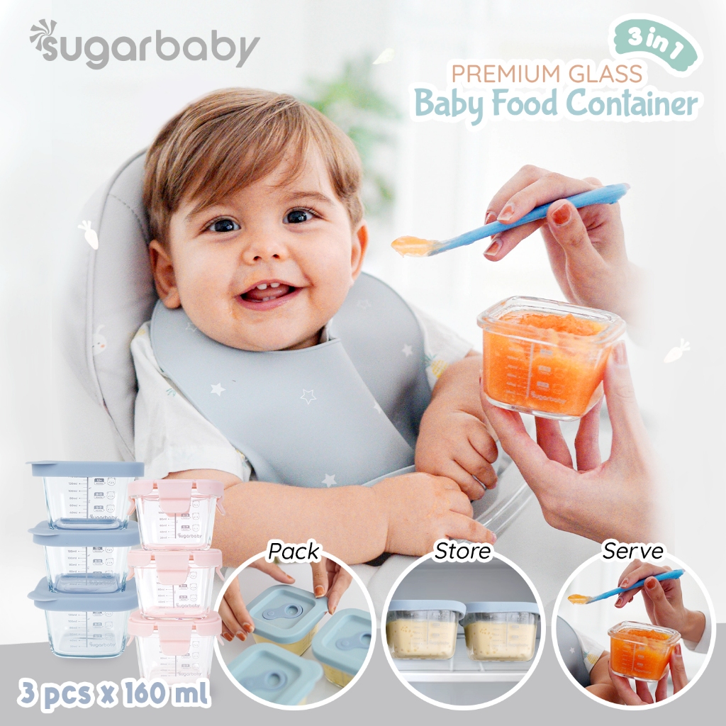 [Mall] SUGARBABY PREMIUM GLASS JAR BABY FOOD CONTAINER 3 PCS BPA FREE / PERALATAN MAKAN BAYI MPASI / WADAH MANGKOK BAYI SILICONE LID & PLASTIC LID