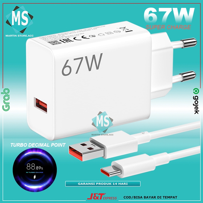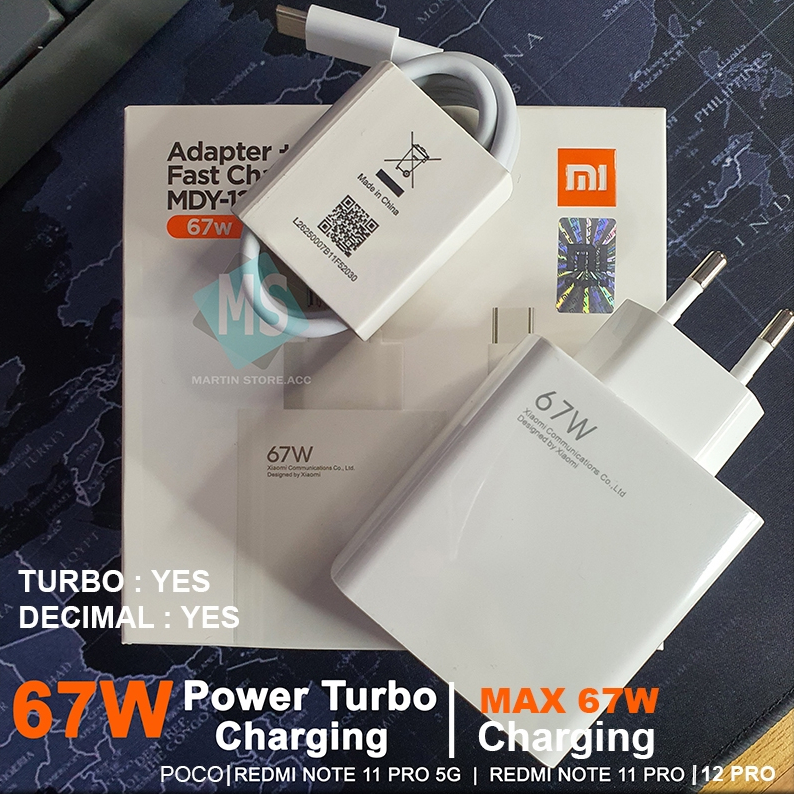 Charger Xiaomi Turbo 67W Type-C Fast Charging Untuk Poco & Redmi Note 7 8 9 10 11 12 Pro 5G