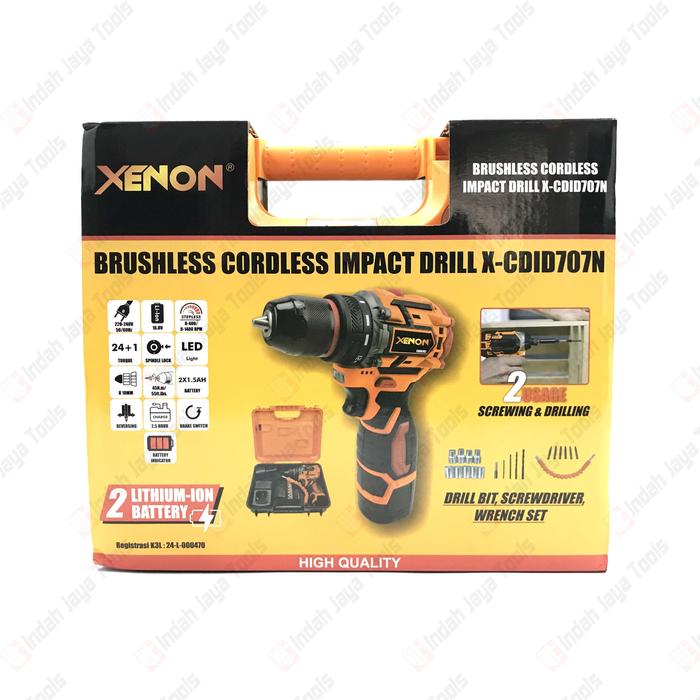XENON CDID707N Cordless Bor Beton 16.8V Baterai Impact Drill Besi Kayu Brushless Screwdriver