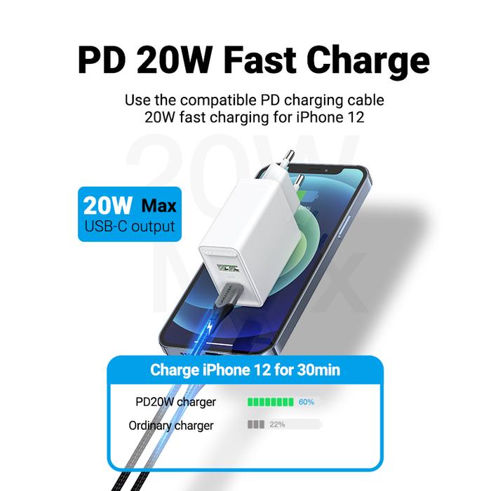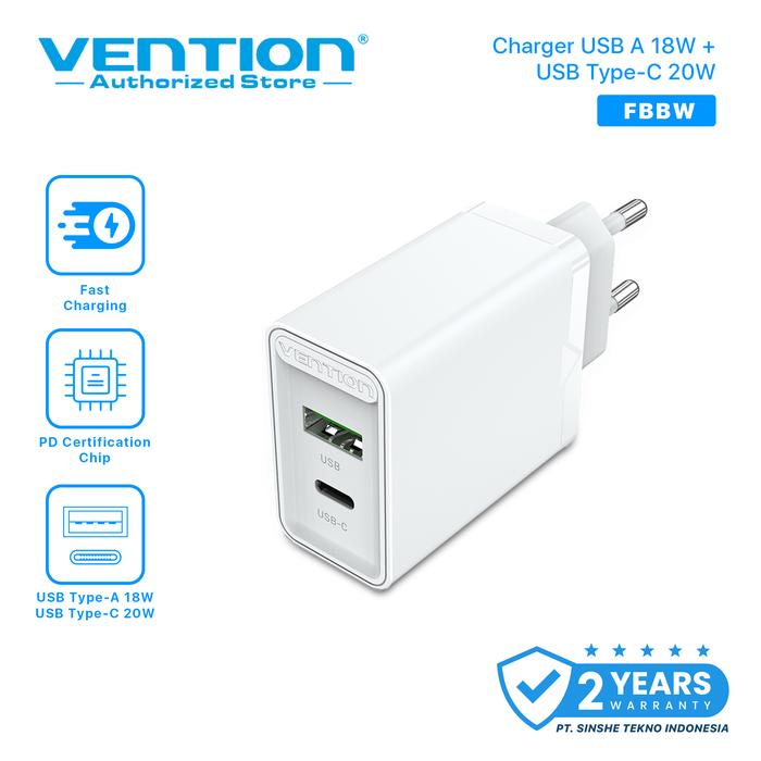VENTION Adaptor USB Type C A Power Delivery PD Charger Apple Iphone Android Xiaomi Samsung Fast Charging - FAC Putih