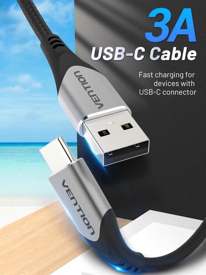 Vention Kabel Data USB Type C Fast Charging Kabel Charger HP Handphone Android - 3A Grey 1 Meter