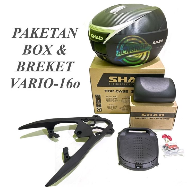PAKETAN BOX SHAD SH34 PLUS BREKET BOX HONDA VARIO 160 NEW 2022