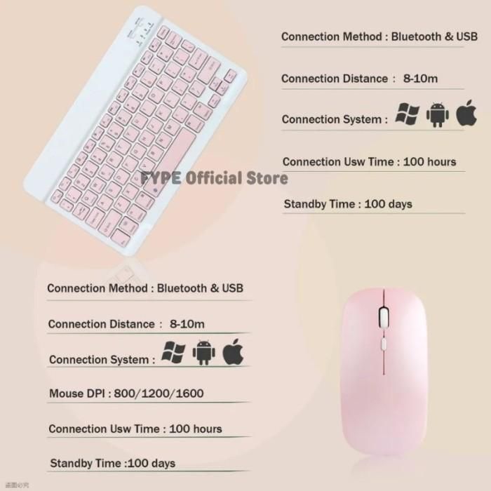 Keyboard Bluetooth dan Mouse Wireless 10 Inch Lightweight Portable PC Tablet IOS Android Hp - Hitam Mouse Saja