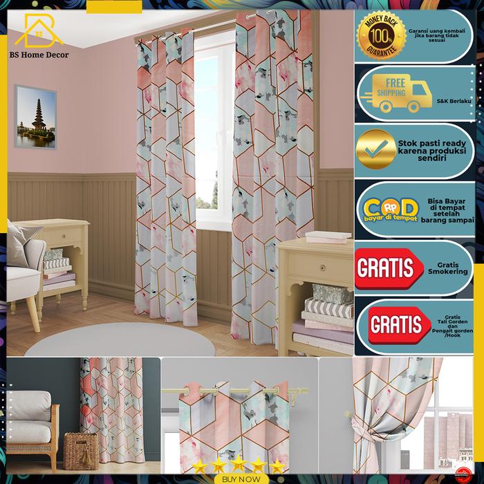 gorden jendela / pintu elegant/murah/ kain hordeng FREE HOOK dan TALI banyak pilihan motif terrbaru marbel Pink dll