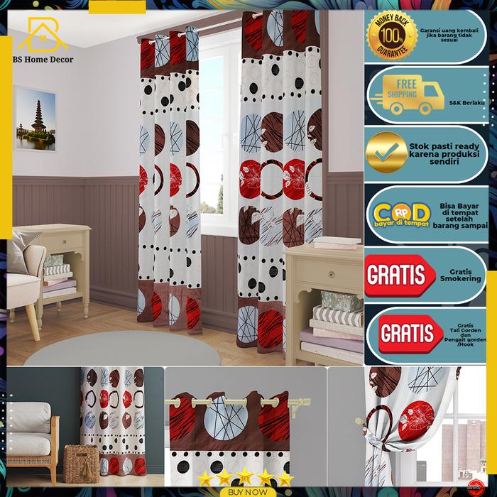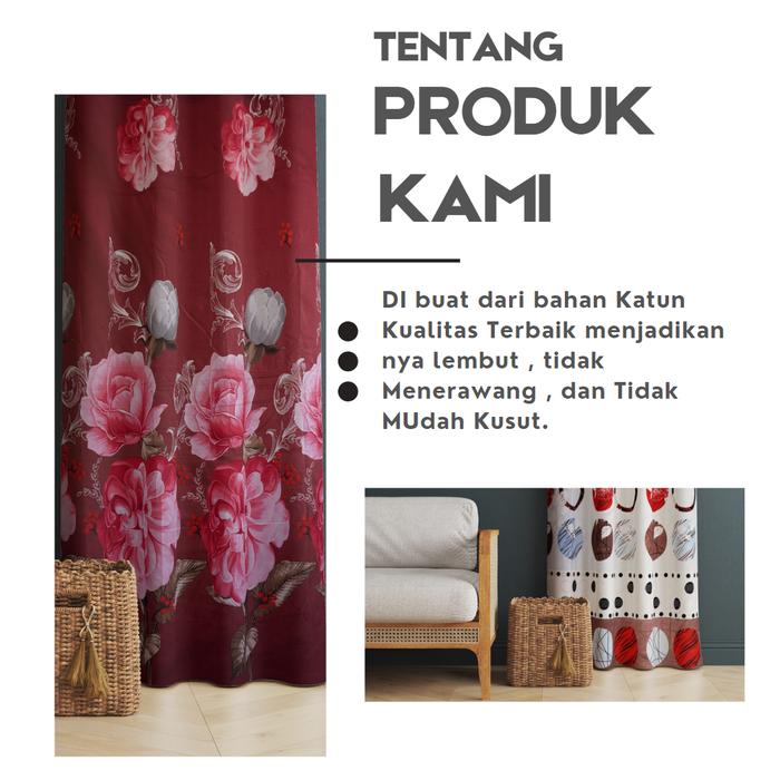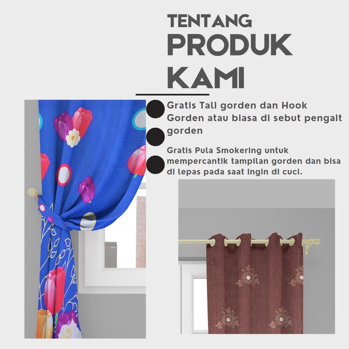 Gorden Jendela Gorden Pintu elegan Smokring Katun Free Tali & hook ukuran Tinggi 225cm hordeng kordeng gordyn Tali