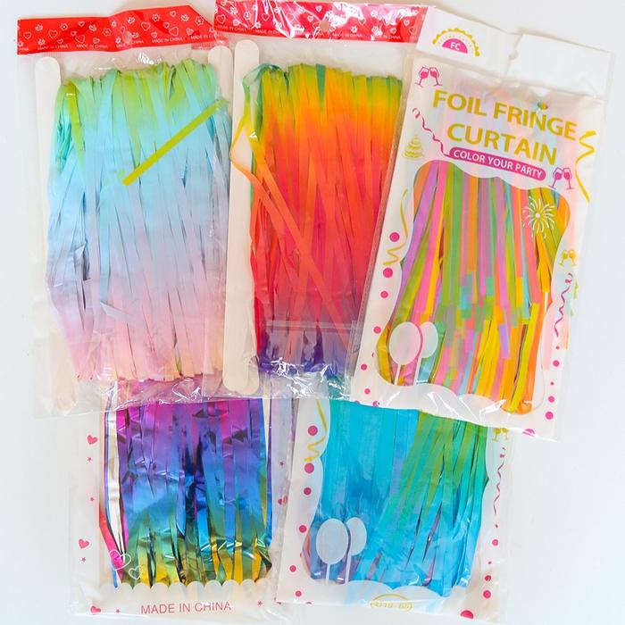 TERMURAH Tirai Foil Pelangi Rumbai Rainbow Curtain Gradasi Dekorasi Pesta Backdrop Metalik Pastel Macaron Banner