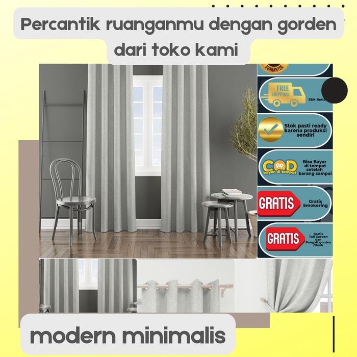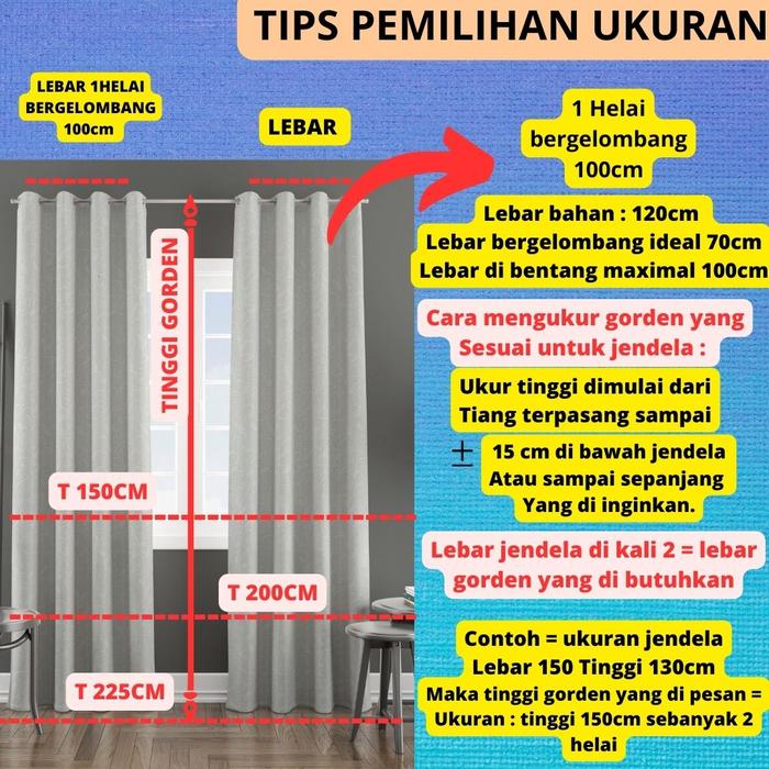 Gorden motif Polos embos/hordeng FREE HOOK dan TALI LP Curtain