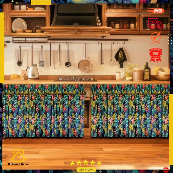 Gorden Kolong Free Tali Motif Elegan Dan Minimalis Hordeng Dapur Terbaru Ukuran 100x70cm