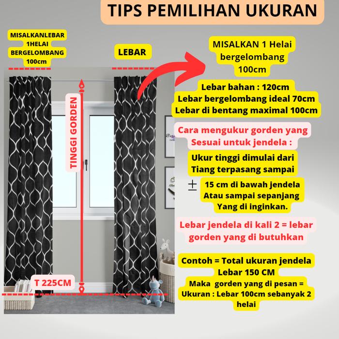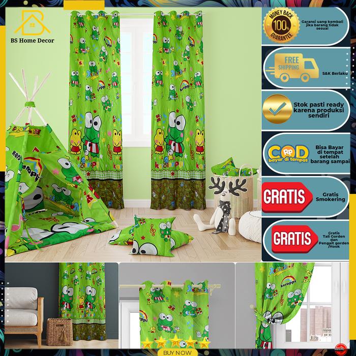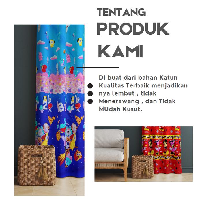Gorden Jendela /hordeng/tirai Pintu anak smockring Kain motif karakter FREE hook&tali size Tinggi 225cm