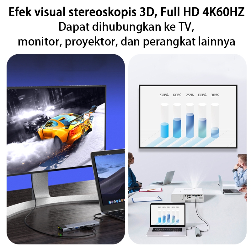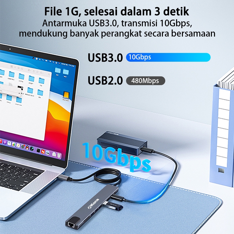 Akona USB Hub Type C 8 in 1 USB C 4K HDMI SD/TF Card Reader Type C Converter Type C To HDMI PD RJ45