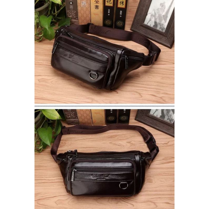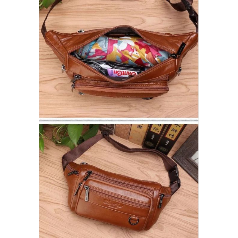 [Mall] WAIST BAG WAISTBAG TAS PINGGANG PRIA KULIT ASLI CHEER SOUL 8321 SLING BAG PRIA ORIGINAL 100 PERSEN BRANDED COKLAT CIKELAT ASLI UNISEX COWOK KECIL