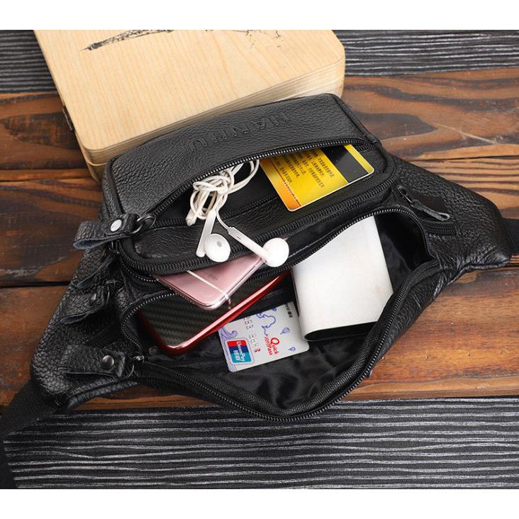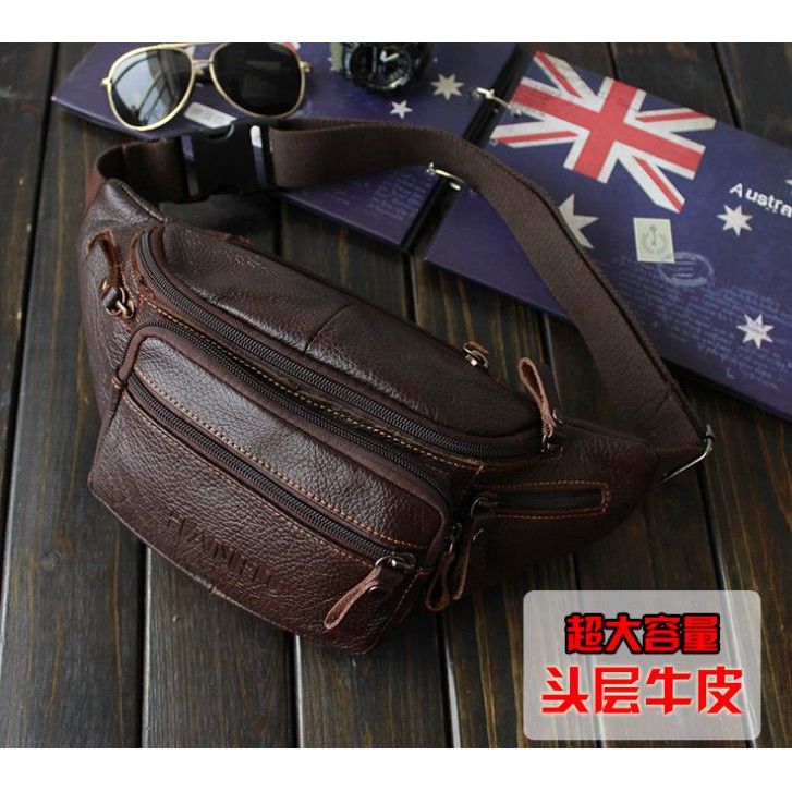 [Mall] KULIT SAPI ASLI TAS PINGGANG WAIST BAG PRIA IMPORT