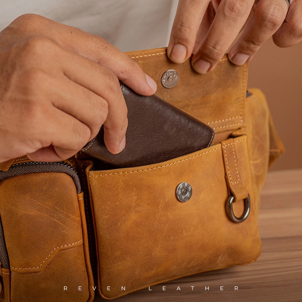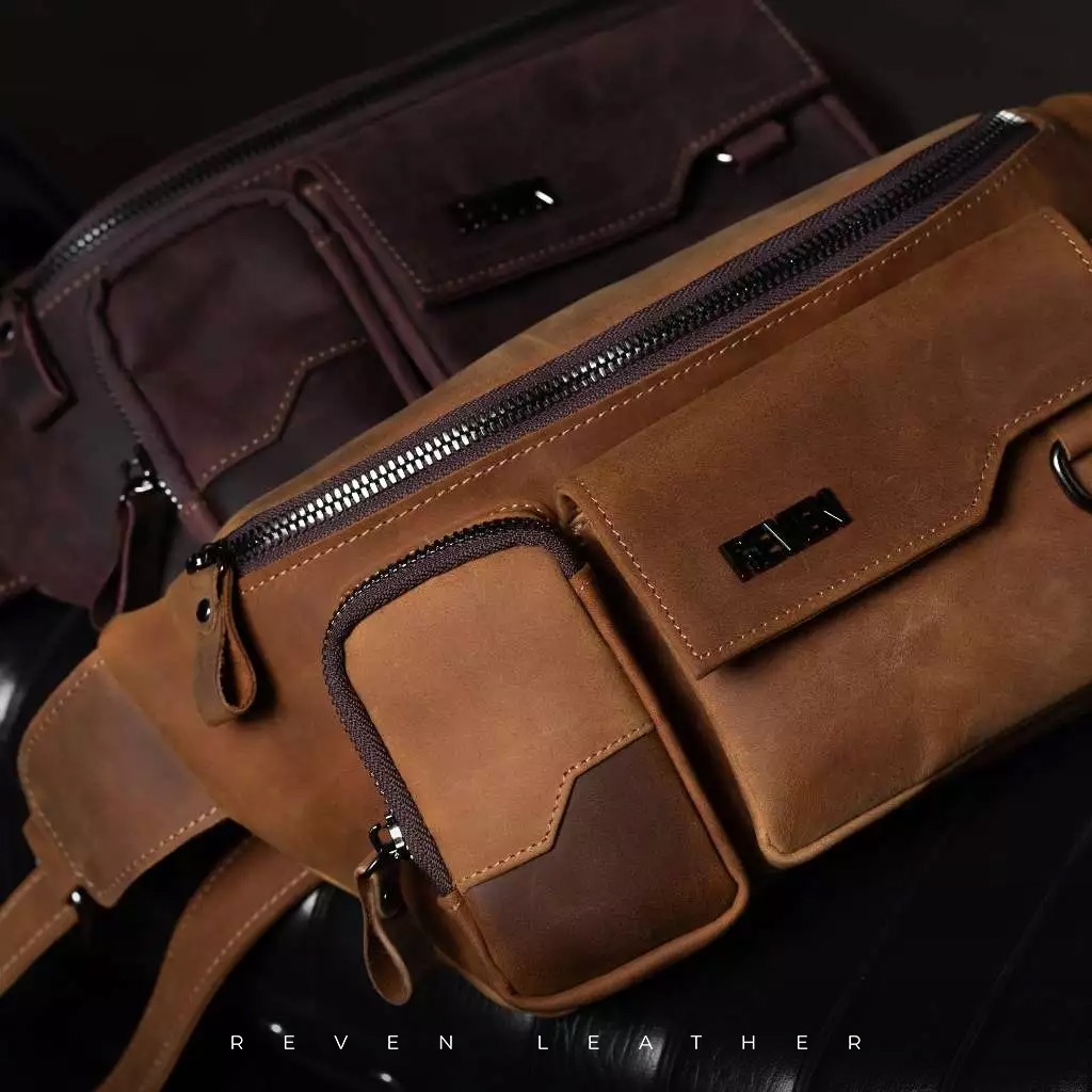 [Mall] REVEN LEATHER BROTO WAIST BAG - TAS PINGGANG PRIA KULIT SAPI ASLI FREE DOMPET STNK