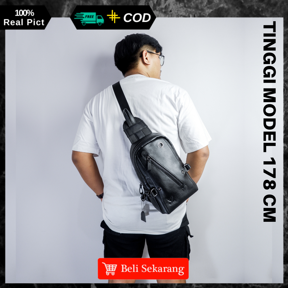 [Mall] TAS SELEMPANG PRIA KULIT SAPI ASLI LEADERBAG TERBARU WARNA HITAM WATERPROOF ATAU WAISTBAG COWOK BRANDED TAS SLINGBAG KULIT ATHENA CC01