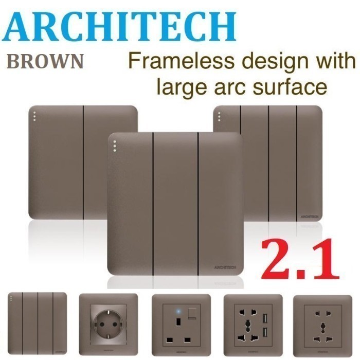[JM] ARCHITECH SAKLAR STOP KONTAK DINDING INFINITY A63 BROWN SERIES 2.1