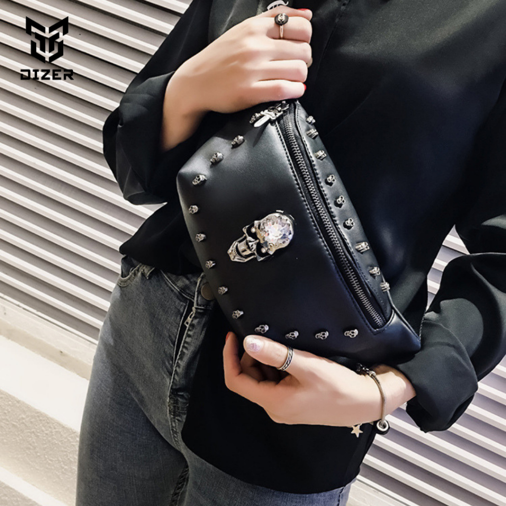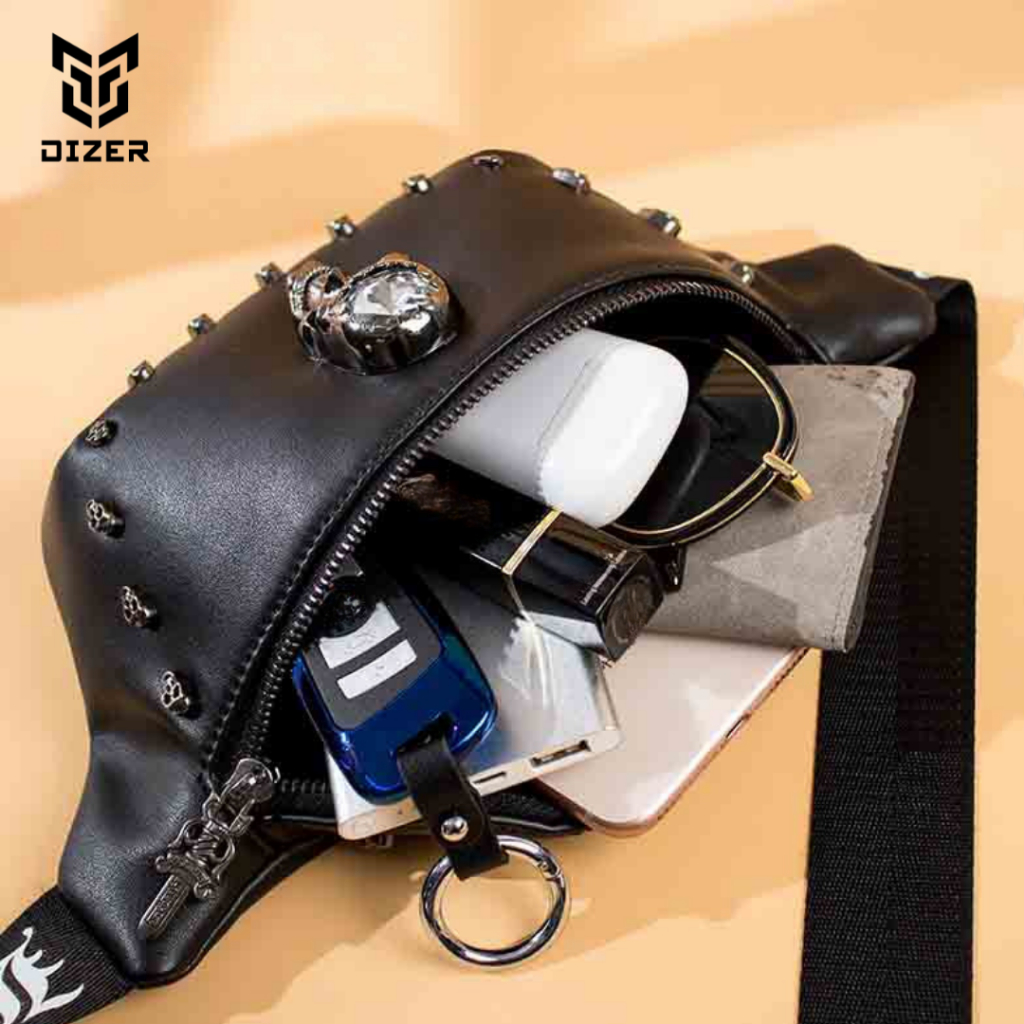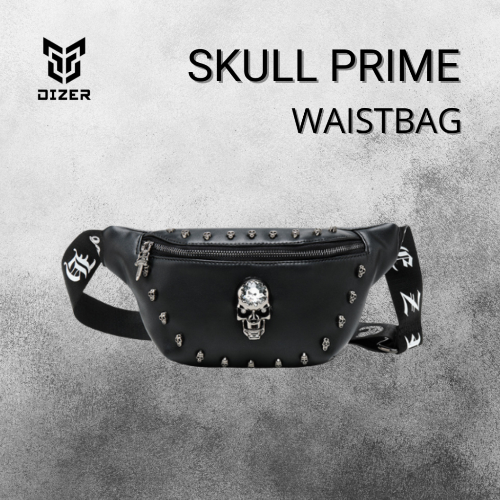 [Mall] DIZER - WAISTBAG SKULL PRIME_ TAS SELEMPANG PINGGANG KULIT_ WARNA HITAM
