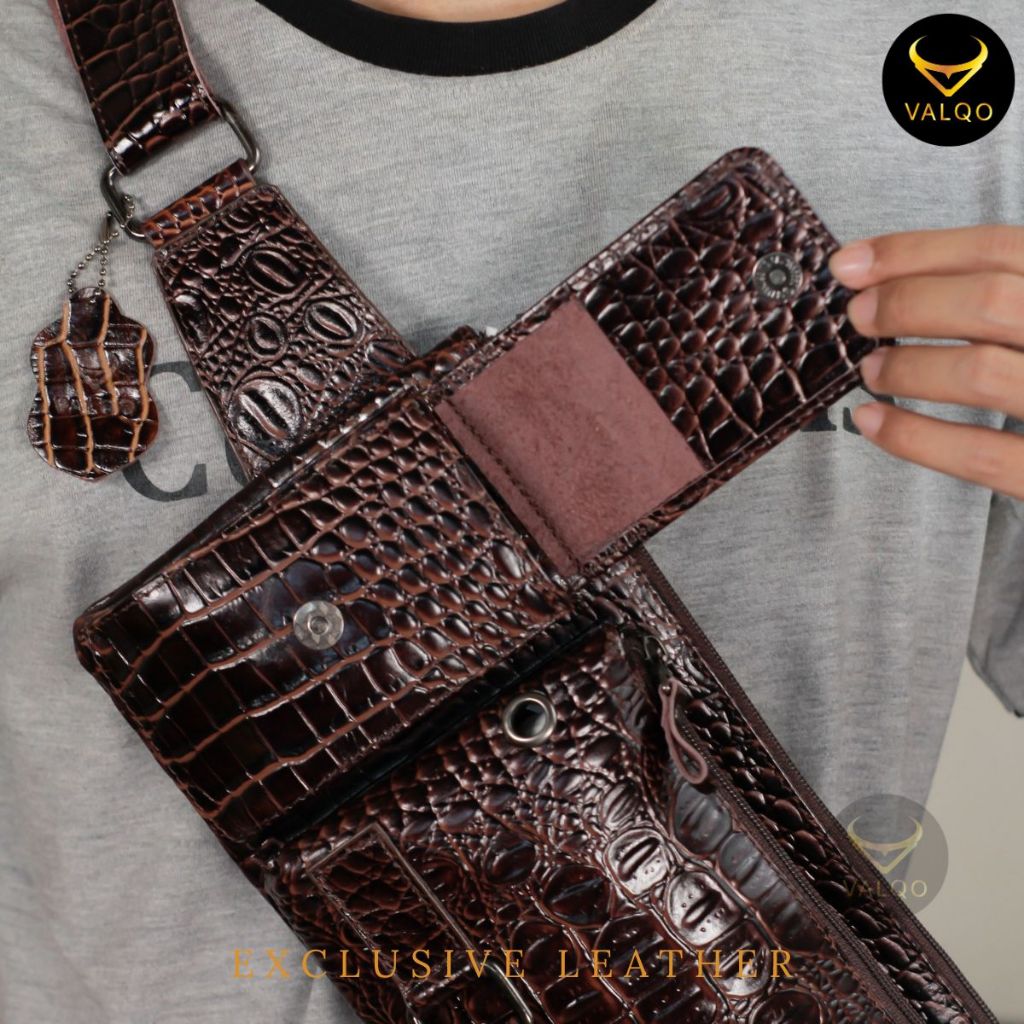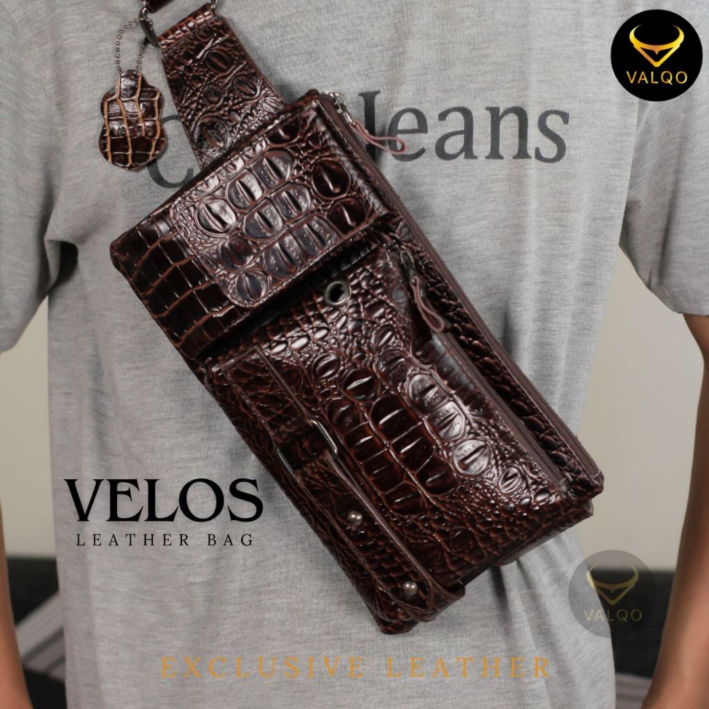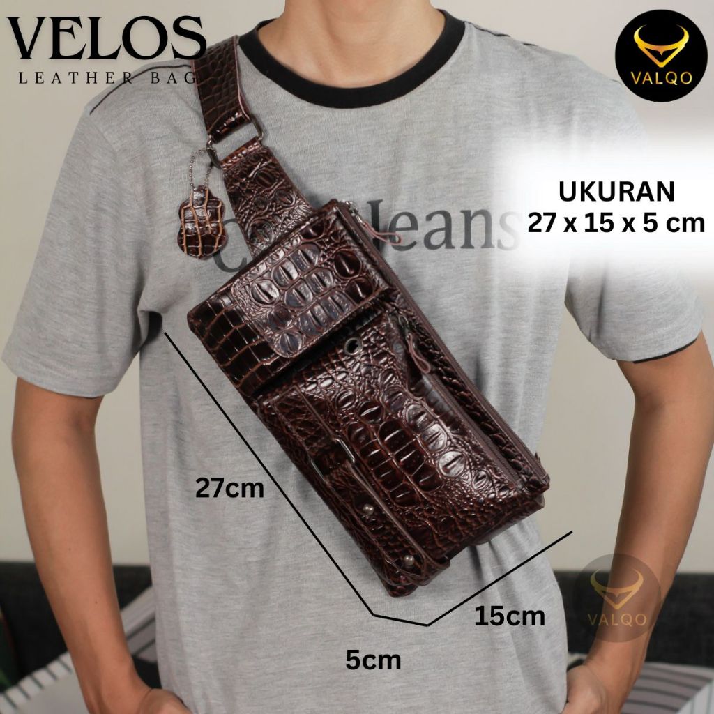 [Mall] VALQO VELOS TAS KULIT SAPI MOTIF BUAYA WAIST BAG DADA PINGGANG SLING BAG COWOK TAS PRIA