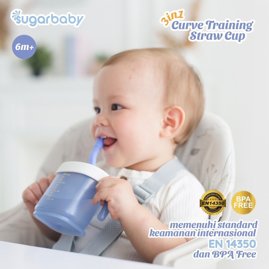 [Mall] SUGARBABY 3IN1 CURVE TRAINING STRAW CUP | GELAS MPASI BAYI BOTOL MINUM GELAS BAYI ANTI TUMPAH ANTI BOCOR | SUGAR BABY 3 IN 1 TRAINING CUP BPA FREE