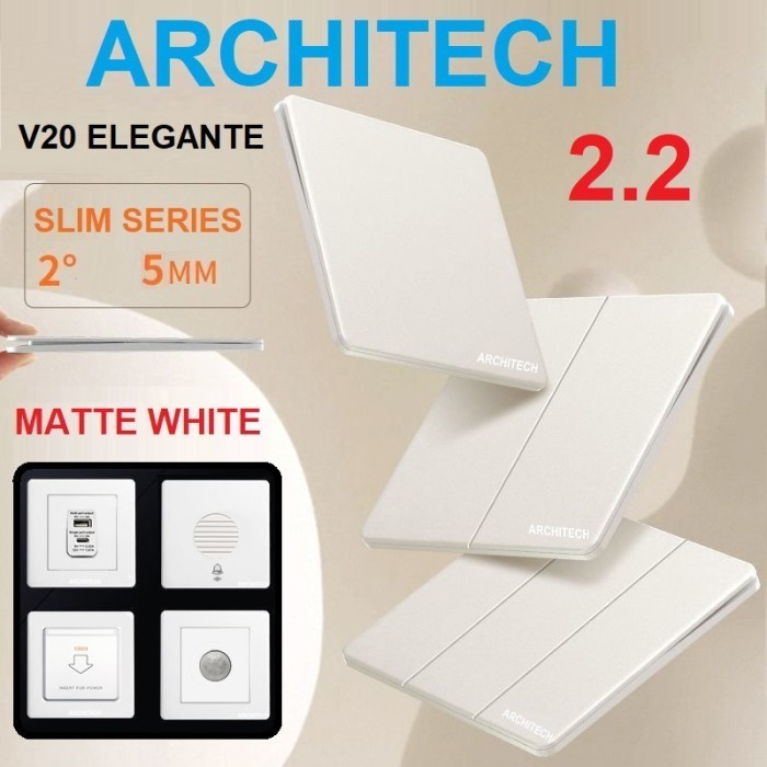 ARCHITECHSAKLAR LISTRIK / SAKELAR LAMPU ARCHITECH ELEGANTE V20 / SAKLAR MEWAH / SAKLAR MODERN / SAKLAR WHITE SERIES NEW