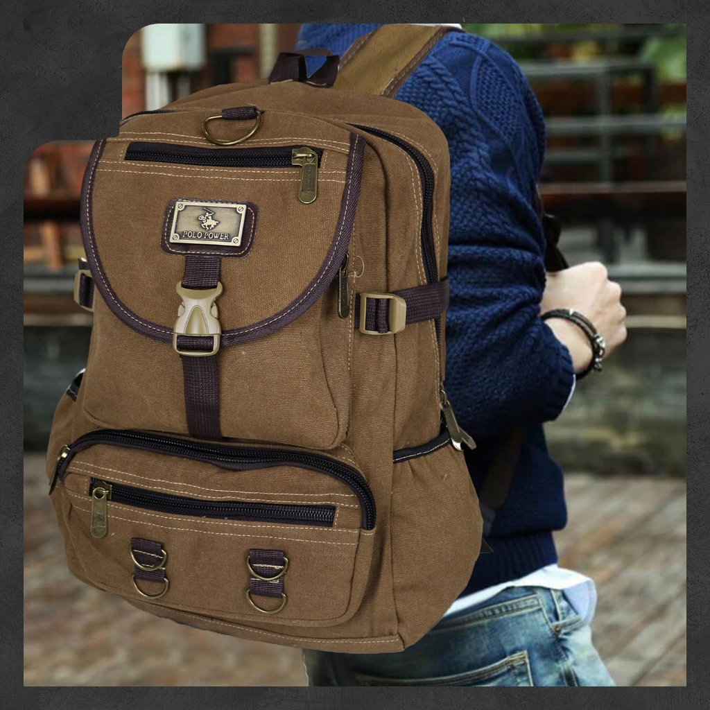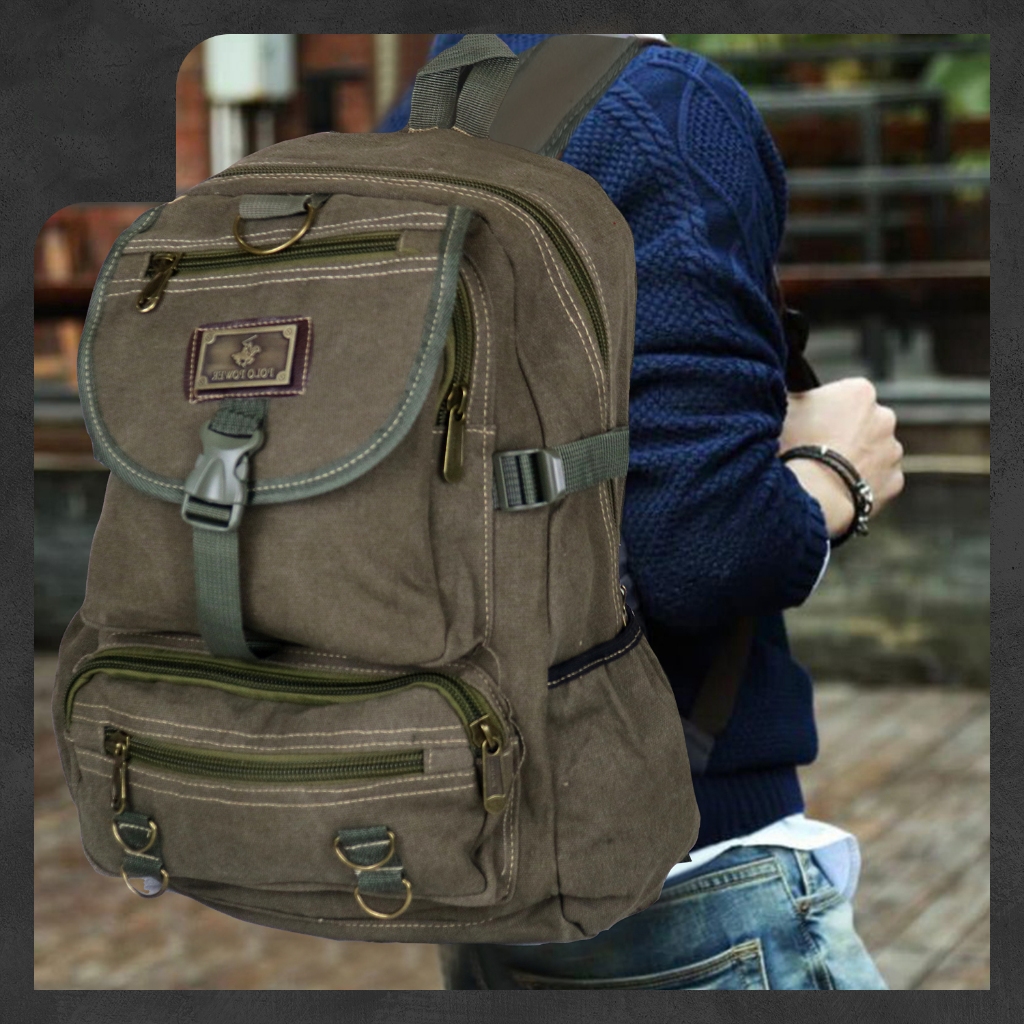 [Mall] BUY 1 GET 1 TAS RANSEL POLO POWER KANVAS JUMBO PRIA IMPORT BACKPACK KAPASITAS 70 LITER EXPANDING #9005