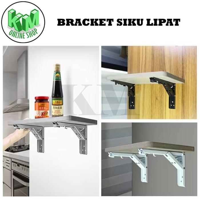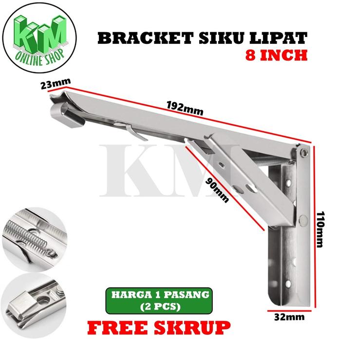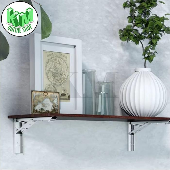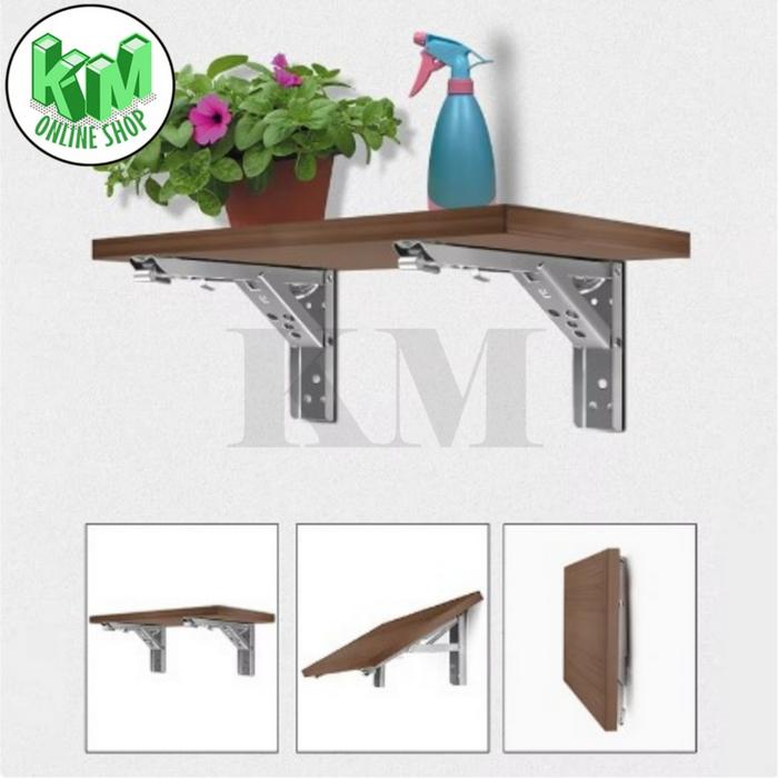 Bracket Engsel Siku Rak Meja Lipat Dinding Folding Stainless Steel 1 Set Isi 2 Pcs (FREE SKRUP) - 8" (192 CM)