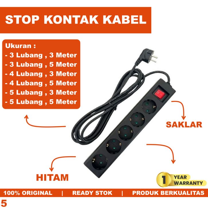 Stop Kontak Colokan Kabel Roll Panjang 5 Meter 3 Meter/ 3 4 5 Lubang