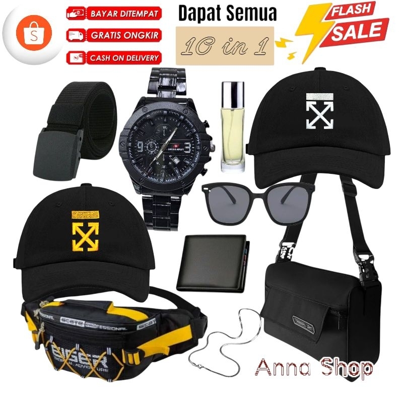 [Mall] [ANNA SHOP] PAKET TERLENGKAP BUNDLING 10 IN 1 DAPAT TOPI TAS JAM TANGAN GESPER IKAT PINGGANG DOMPET KACAMATA PARFUM UNISEX PRIA DAN WANITA