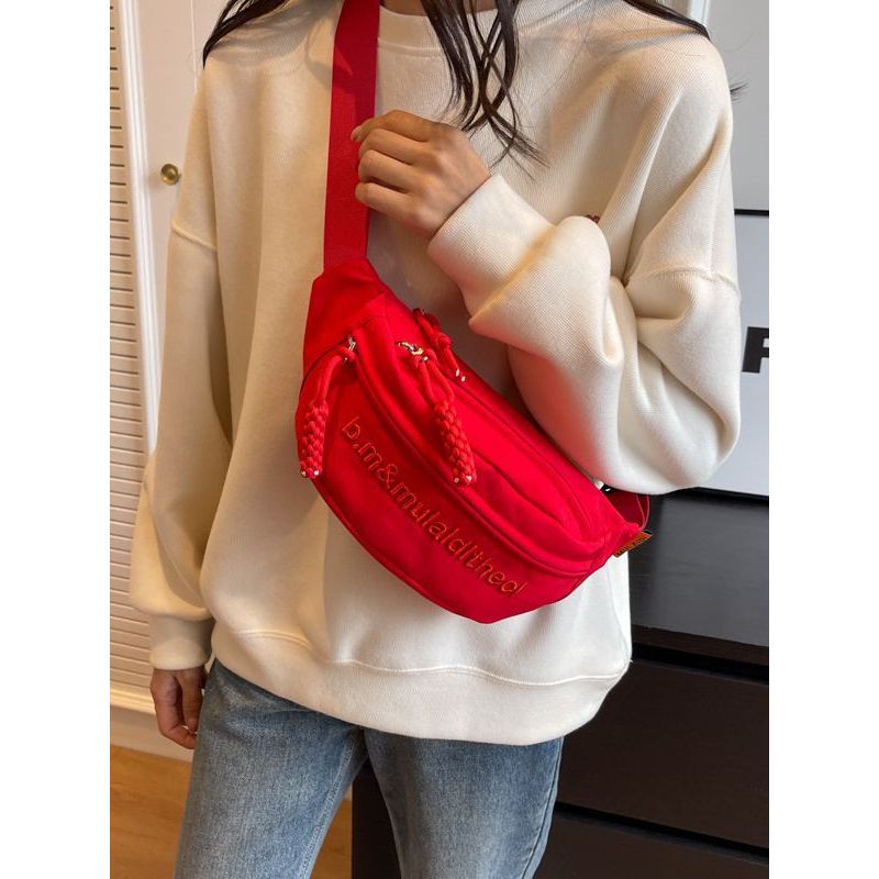 [Mall] ( READY )FIEXIBLE -TAS PINGGANG FASHION WANITA KOREA TAS BAHU WANITA SHOULDER BAG TAS CANVAS SELEMPANG