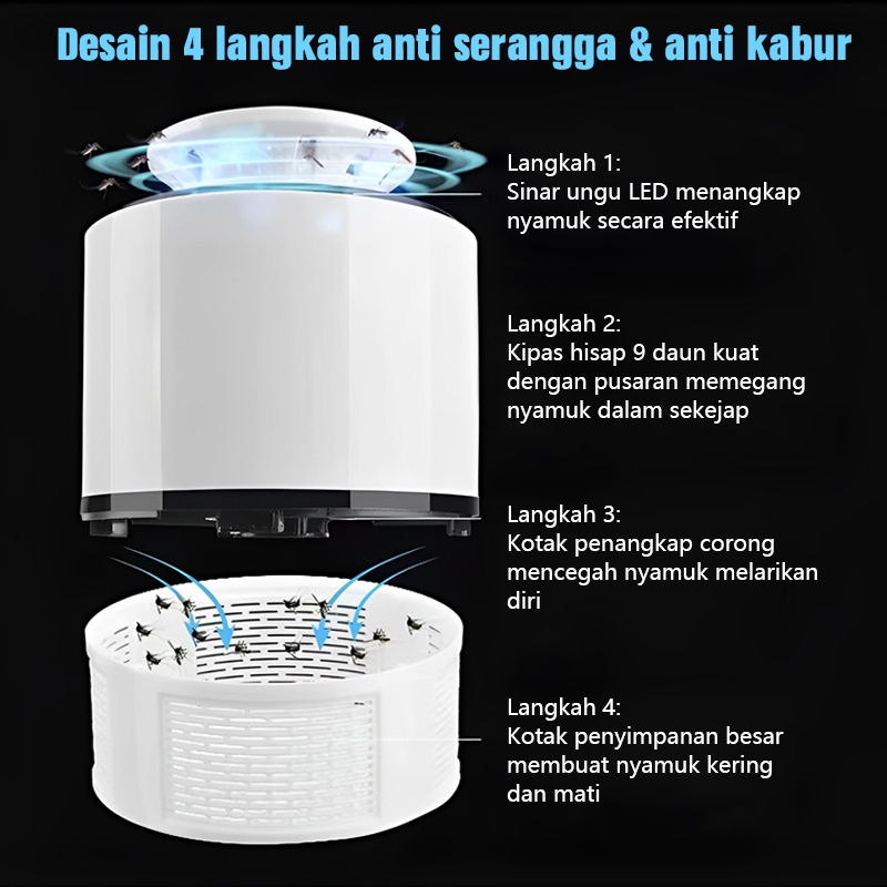 Alat Pembunuh Nyamuk Elektrik Tanpa Kimia - Kipas Kuat + Lampu Pikat Nyamuk, Mesin Rumah Tangga Aman untuk Anak (Cocok K
