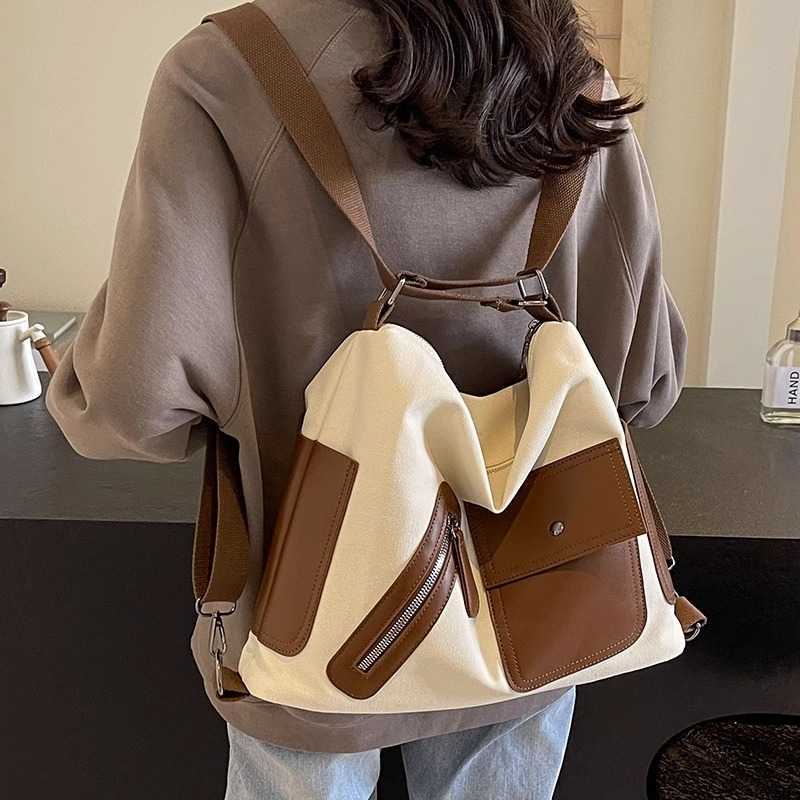 [Mall] ✨TAS WANITA RETRO CANVAS LARGE CAPACITY KAPASITAS BESAR CASUAL TOTE BAG SELEMPANG CROSSBODY SHOULDER BACKPACK BAG