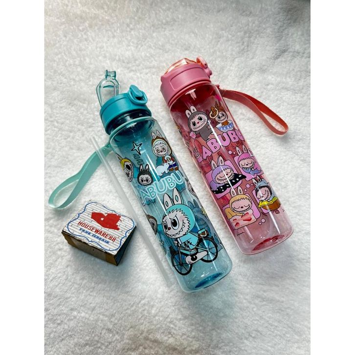 EKSKLUSIF BOTOL MINUM LABUBU VIRAL / BOTOL VIRAL / Botol Viral Bening Botol Transparan Kapasitas 900ml Tali