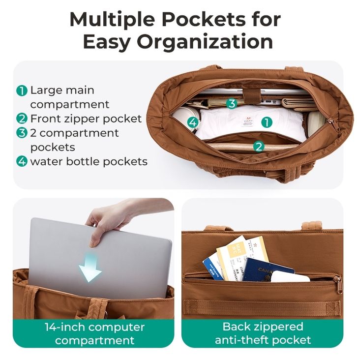PROMO BAGSMART Tas Tote Bag Wanita Bowknot Tas Ringan Puffy Tahan Air Tas Kuliah Kantong Depan for Travel egekh