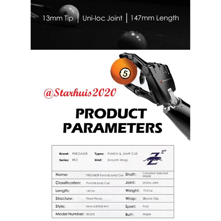 TERLARIS PREAOIDR BKIII STIK BRIK BOLA LOMPAT PROFESSIONAL BREAK CUE 13MM TIP HARD MAPLE SHAFT SPORT PU GRIP
