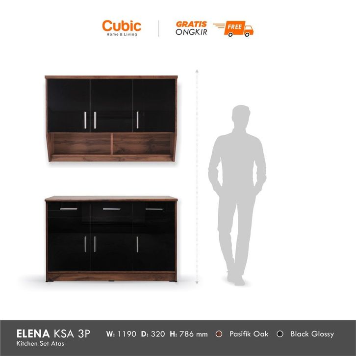 Cubic Kitchen Set 3 Pintu Minimalis / Rak Atas Dapur / ELENA KSA 3P - Hitam / Putih