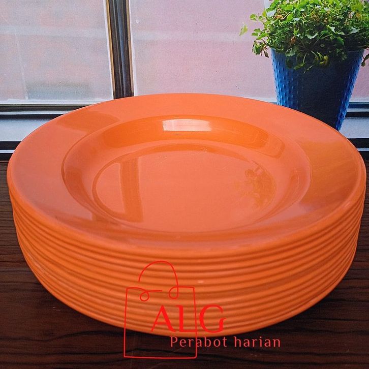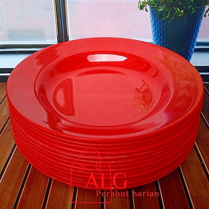 PROMO 12PCS PIRING MAKAN BESAR 23CM MELAMINE IMPORT TEBAL FREE SENDOK MAKAN