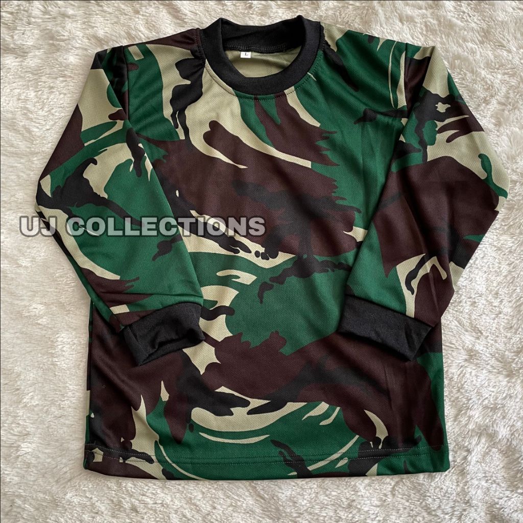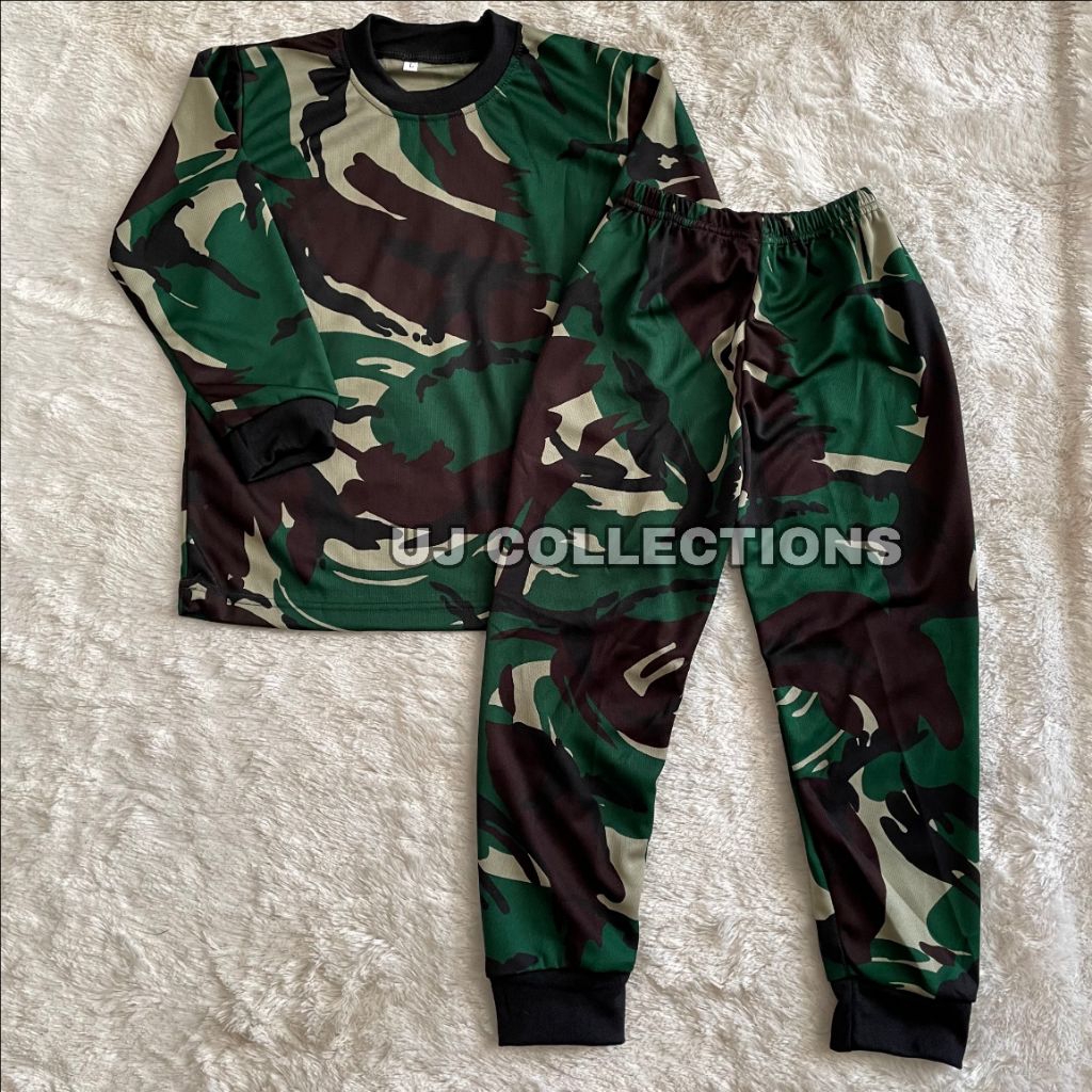 Setelan kaos anak panjang motif loreng malvinas polos free topi rimba usia 1 - 10 tahun unisex