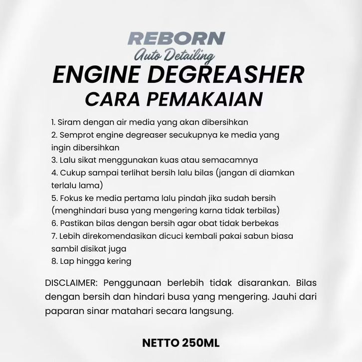 REBORN - Pembersih Mesin Mobil Motor Blok Kerak Mesin - Engine Degreasher 250ml Free Kuas Aplikator