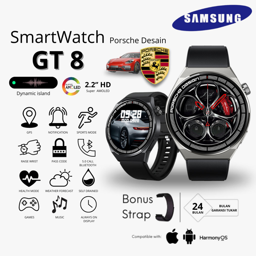 Samsung Galaxy Watch Gt8 Jam Tangan Pintar Pria, Pemantauan Detak Jantung, Kesehatan, Olahraga Lari, Pema
