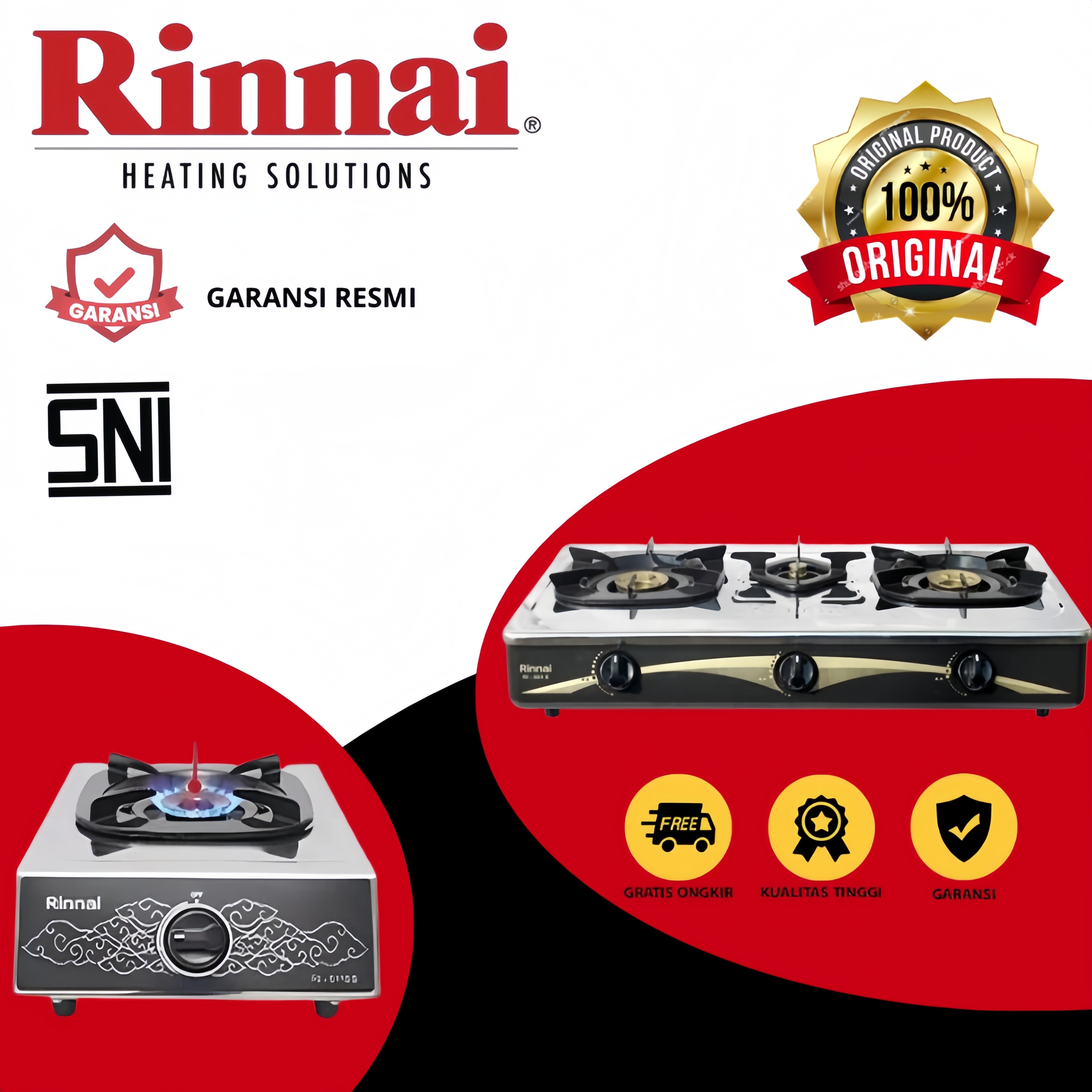 KOMPOR GAS RINNAI 1 2 DAN 3 TUNGKU STENLIS RI 511 SS RI511SS RI 522 SS RI-522SS 514 524A RI-603E TERBARU MURAH MUDAH D