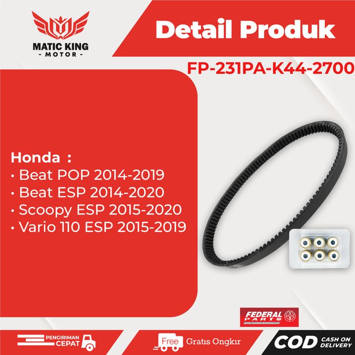 Vanbelt V Belt Fanbelt Kit Set Beat Vario Scoopy 110 eSP POP Street K44 Federal FP-231PA-K44-2700